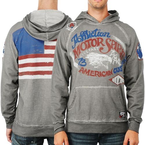 Take some inspiration from classic motorcycle masters and turn it into a modern look with this Motor Club 73 hoodie from Affliction! This slim fit pullover features an allover worn look with distressed detailing and a unique wash. It also displays distressed custom graphics on the front, sleeves and on the back honoring the old-school biker style. Ride on, man. Ride on.